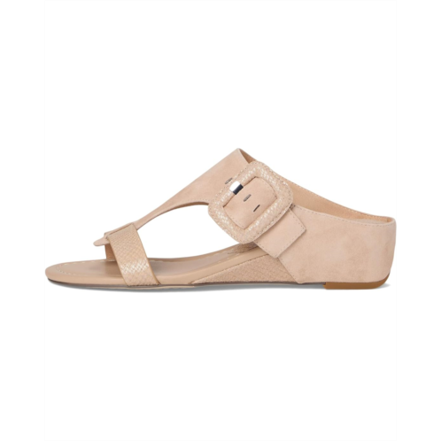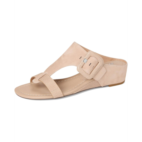 The Donald Pliner Ofelia sandal makes a chic statement with a T-strap silhouette, open toe, oversized buckle detail at the side, and wedge heel.