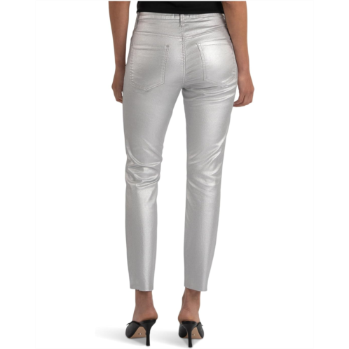 Redefine your look wearing the stylish KUT from the Kloth Charlize High-rise Fab Ab Cigarette Leg-raw Hem Jeans. This easygoing style shows off a high-rise cigarette coated silhouette with a looser fit around the ankles. The jeans features belt loops, a zip-fly with button closure, and a five-pocket design.