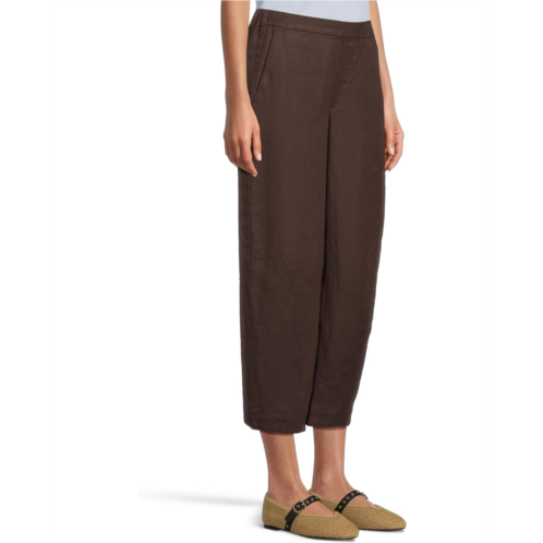 Walk in style wearing the Madewell Barrel Flat Front E-Back Linen Pull-On in Charred Oak. It features barrel flat front e-back linen pull on, relaxed fit, side hand pockets, and high-rise silhouette.