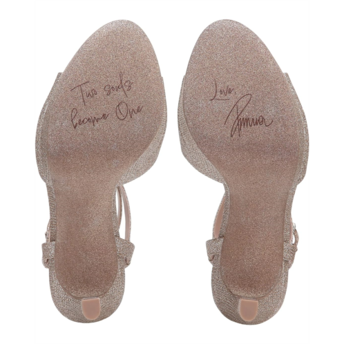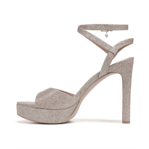Adjustable buckle closure on the ankle strap with heart charm embellishment.
