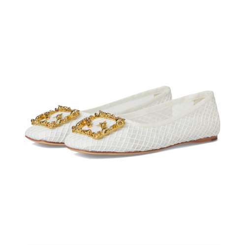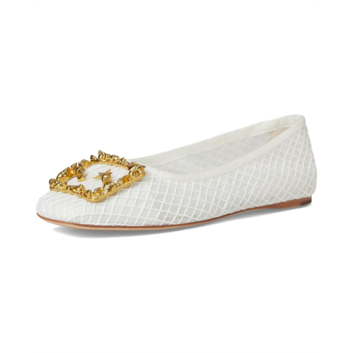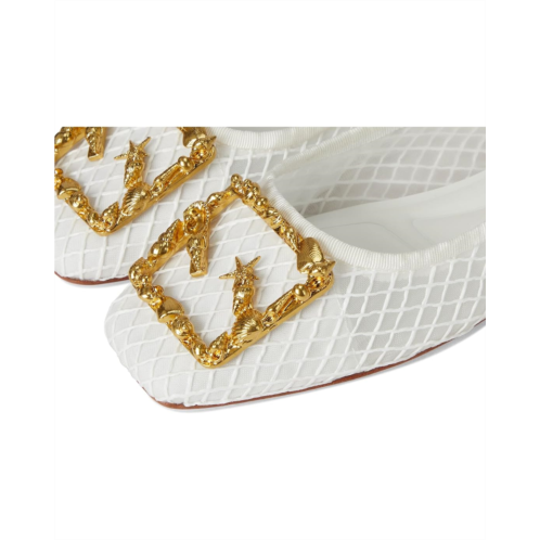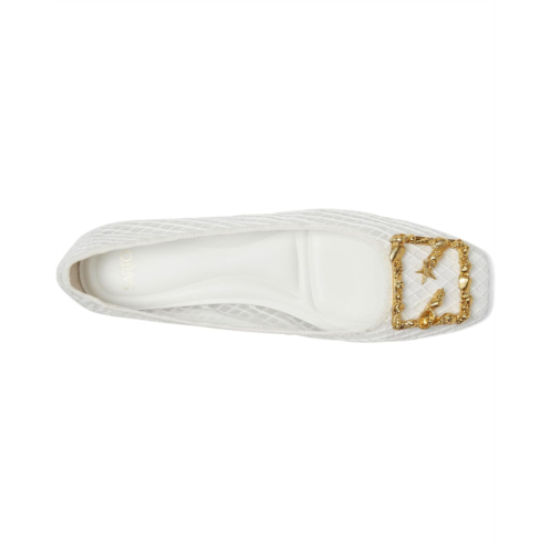 Modern sophistication with a breath of coastal air in the Franco Sarto A-Flexa Amaya Ballet 11. Featuring a breathable faux raffia upper with delicate netting, this ballet flat captures the essence of sun-kissed days by the shore. The gold seashell buckle adds a luxe, ocean-inspired touch, while the square toe silhouette keeps it contemporary. A pull-on design ensures effortless wear, while the faux leather lining, synthetic insole, and leather outsole provide all-day comfort.