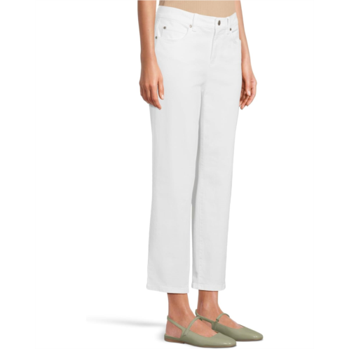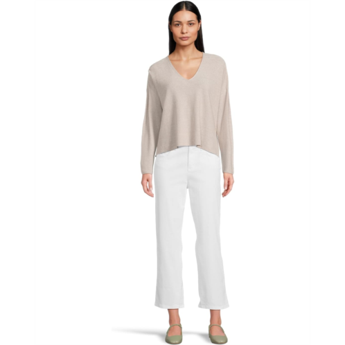 The Eileen Fisher Straight Cropped Jeans is a classic-weight denim with a touch of stretch. The garment is dyed to acquire a deep, saturated light wash color and comes in a straight-leg style. It features a mid-rise waist with belt loops, a zip-fly and button closure, a five-pocket design, and a slightly cropped silhouette.
