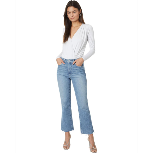 Get ready to rock a trendy look by wearing the Paige Courtney w/ Raw Hem in Khristen Distressed. These high-rise jeans feature a relaxed ankle flare, delivering a flattering fit that keeps you comfortable all day long. The lightweight denim in a light vintage-inspired wash adds a nostalgic charm, while the subtle lived-in details give them an effortlessly cool vibe. With their raw hem, these jeans exude a touch of edginess that sets them apart.