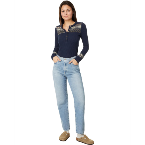 Get a versatile style choice for your tank tops or tees adding the AG Jeans Rian High Rise Straight Jeans in Eclipsed to your wardrobe. They have straight legs with high-rise and ankle-skimming inseam. The jeans are cut roomy through the hip and leg for ease. A high-rise waist, tapered legs, and front zip-fly button closure allows you to move freely. The classic five pockets, light wash, and branding patch on the back waist make it a true piece of brand.