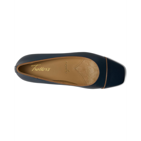 Take fashion flight wearing the super trendy and lightweight Trotters Harbor Flats. The pull-on footwear features leather upper with square toe silhouette and delicate piping detail enhances the skimmer style.