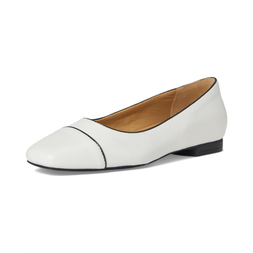 Take fashion flight wearing the super trendy and lightweight Trotters Harbor Flats. The pull-on footwear features leather upper with square toe silhouette and delicate piping detail enhances the skimmer style.
