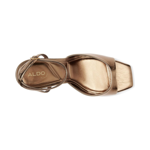 With its flared heel, sleek ankle strap, and party-ready attitude, this statement-making ALDO Valentyna dress sandal is ready to party. Inside, the ALDO Pillow Walk dual-density foam is added for ultimate comfort. With luxurious suede or crinkled metallic or leather upper, these square-toe sandals deliver both sophistication and sparkle.