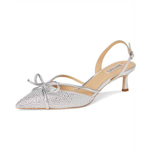 Made of a silk upper with rhinestone and knot detailing, the Badgley Mischka Angelina heels are perfect to style up your looks and outfits. The leather insole and breathable leather lining offer long-lasting durability and comfort. These heeled sandals feature an adjustable ankle strap for a secure fit. Get ready for a party or event wearing these leather pumps.