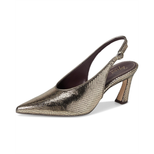 Walk into elegance and comfort wearing the Naturalizer 27 Edit Elaine-where style meets sustainability. Crafted from premium, responsibly sourced leather, these sleek heels feature a sophisticated slingback strap and U-shaped topline for timeless appeal. The pointed toe adds a chic finish, while REZORB responsive cushioning and Contour+ Comfort technology ensure sneaker-level support with every step. Designed with a smooth lining and insole for breathability, plus a rubber outsole for durable wear, these heels are perfect for all-day wear.