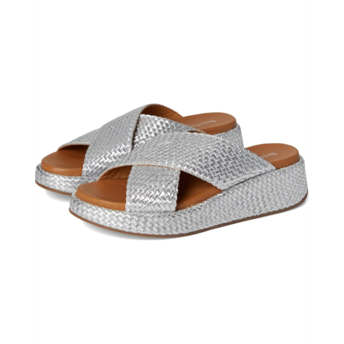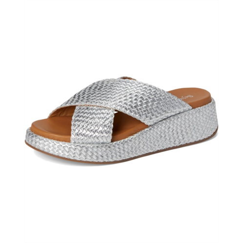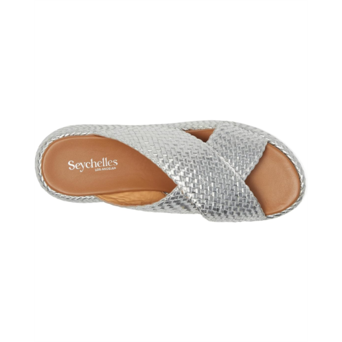 Dress to impress in this beautiful and chic Seychelles Key West Metallic Leather woven wedge slide. The Key West sandal gives you all the vacation vibes you will need this summer! Crafted from leather upper, lining, and insole, this pair of sandals features open round toe, woven leather crisscross strap detailing, wedge heel, slip-on style, and padded insole.