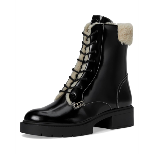 Maintain your effortless style this chilly weather season in the COACH Leighton Shearling Bootie. This bootie features a round toe silhouette, leather and shearling upper, man-made leather and shearling lining, and a man-made leather insole.