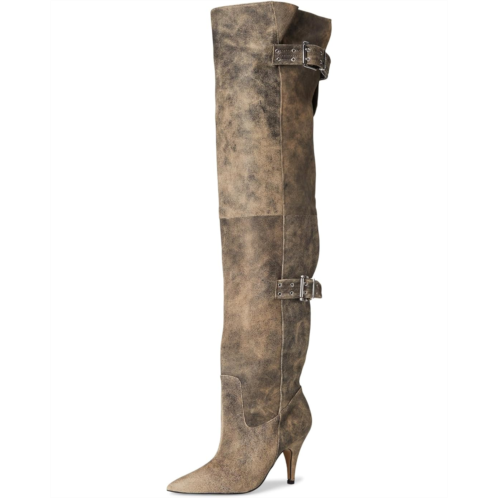 Introducing the Baddie over-the-knee boot, exclusively from Steve Madden. Crafted from a polyurethane upper, these boots offer a pointed toe silhouette with buckle closure straps, nylon lining, polyurethane insole, and a stiletto heel.