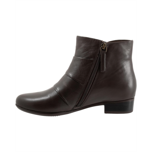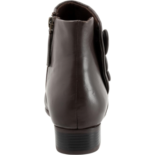 Don a stylish look by wearing the Trotters Mila boots. The pull-on style boots have a round-toe design, side zipper closure, three-button side design on the side, and flat heels. The leather upper ankle-high boots have a removable cushioned footbed with arch support and comfortable lining for all-day comfort.