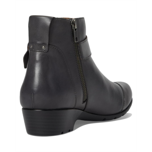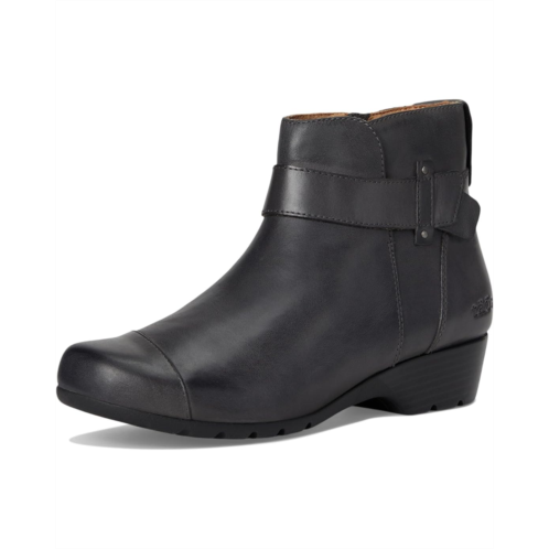 The taos Footwear Gazette Boot is here in gorgeous full-grain leather! This easy on/easy off casual tailored bootie features a decorative strap, an inside YKK zipper, and a perfectly elevated block heel. Experience the superior support of the Curves & Pods removable footbed with arch and metatarsal support and a durable, yet shock-absorbing rubber outsole.