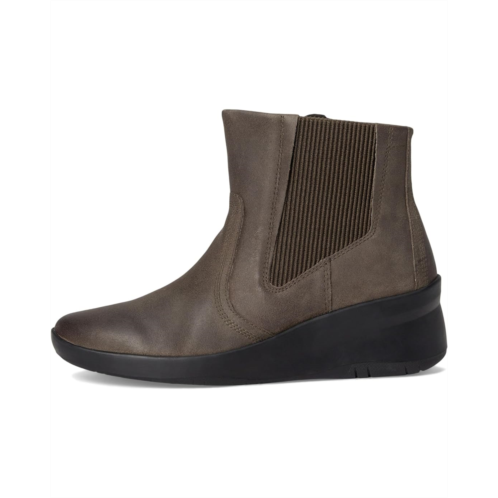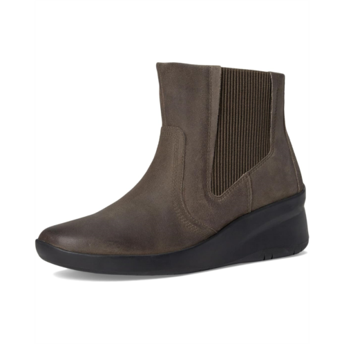 From the streets to the trails look amazing wearing the Clarks Suttyn Rae. Crafted from leather upper, mesh lining, and polyester insole, this pair of boots features round toe, ankle-length silhouette, wedge heels, and elasticized goring.