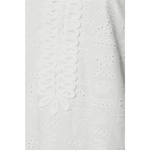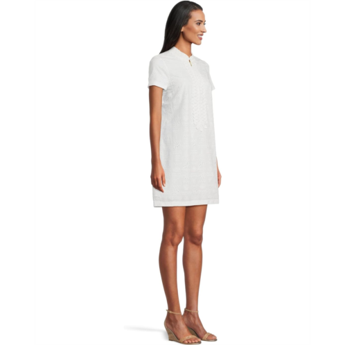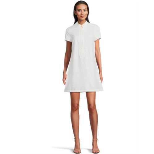 The Lilly Pulitzer Mamie Dress is a breezy, feminine piece designed for effortless style. Featuring an easy fit and short sleeves, this charming dress is detailed with a notch neckline, front zipper, and delicate Lilly lace trim that adds a touch of texture and elegance. The eyelet fabric lends a playful, summery vibe, while the back zipper closure ensures a smooth, flattering fit. Perfect for warm days when you want to look polished with minimal effort.