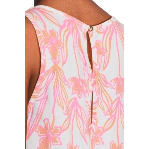 Donne the pretty and casual Lilly Pulitzer Dixi Dress for lunch dates or day outs with friends. The pull-on style swing dress features a crew neck, a sleeveless design with cut in the armholes, back keyhole detail, and an above-the-knee silhouette. The allover floral print adds to the style, and the tall hem ruffle detail gives a finishing touch to the look.