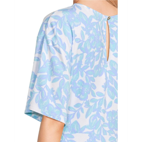 Look pretty and casual donning the Lilly Pulitzer Shaw Dress for casual day-outs or lunch dates. The crew neck dress features dropped shoulders, elbow-length sleeves, and front twist detail at the waist. It comes with an allover floral print and is intended to hit at the knees.