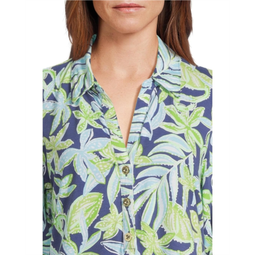 The Lilly Pulitzer Bingley Dress is an easy-fit, popover shirtdress with a collar, half placket with gold buttons, elbow-length sleeves, and tall ruffle at the hem. The cotton fabric of the dress takes your comfort to the next level. Featuring an allover floral print, this printed dress works for different occasions.