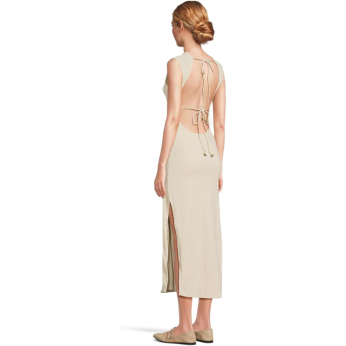 Get ready to turn heads wearing the Free People Eventide Midi dress! Made with a midweight knit textile, this dress features a crew neckline, sleeveless style, zippered side closure, and self-ties on the neck and back. The eyelet cut-out detail adds a touch of elegance, while the open back and side slit give it a stylish twist. Why We ♥ It: Perfect for brunch, special occasions, and more.