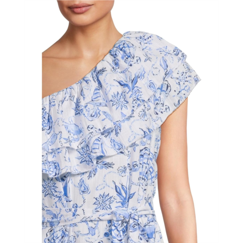 Turn heads from sunrise brunches to sunset strolls in the effortlessly chic Lilly Pulitzer Montecito Skirted Romper. Designed with a one-shoulder neckline and playful double ruffle detailing, this easy-fit piece merges the charm of a dress with the freedom of a romper. The tiered skirt adds flow and flair, while the separate sash cinches your waist just right for a flattering silhouette that skims the body but leaves room to move. The ankle-length hem and sleeveless design bring breezy elegance, and the blooming floral print ensures you're always in full style bloom.