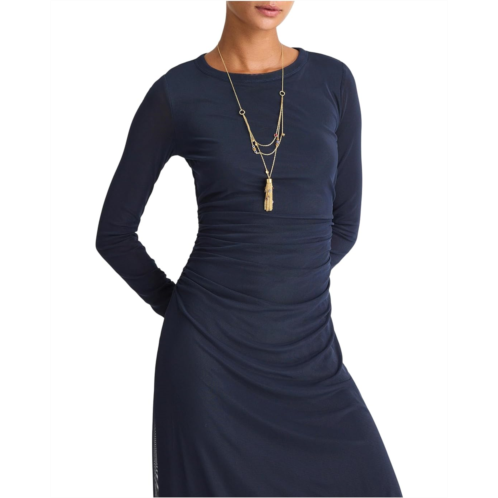 The Madewell Irina Dress Mesh is fully lined throughout the body with sheer long sleeves, offering a flattering look and comfy feel. Crafted in stretchy mesh, this midi dress is designed with a jewel neckline, a ruched waist, and a straight hem. Make your fashion statement wearing this mesh dress.