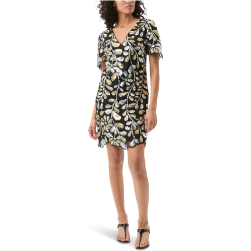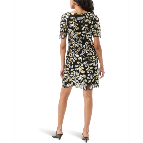The Trina Turk Obelle 2 Dress is an easy V-neck shift silhouette featuring unique paillettes and scalloped hem. This sequined dress boasts short sleeves and zippered center back closure.