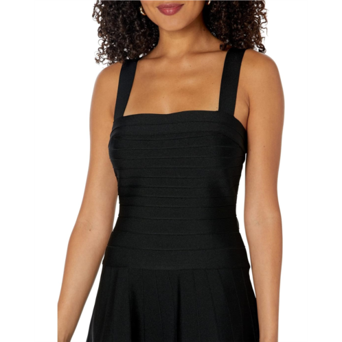 Bebe Bandage Drop Waist A-Line Dress features a fit-and-flare design with a vintage-inspired look.