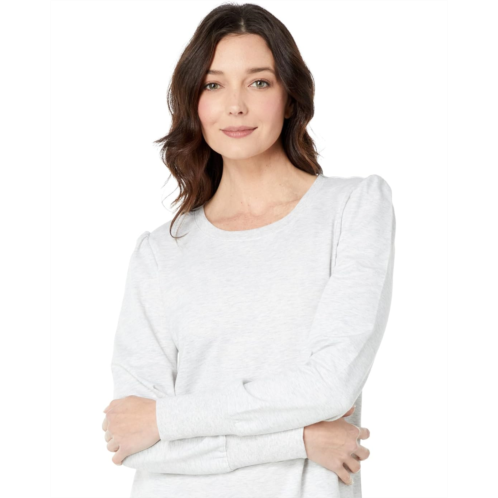 Crew neckline and puff sleeves with ribbed cuffs.