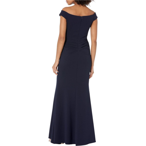 [US] XSCAPE Long Off-the-Shoulder Scuba Crepe U-Front Dress