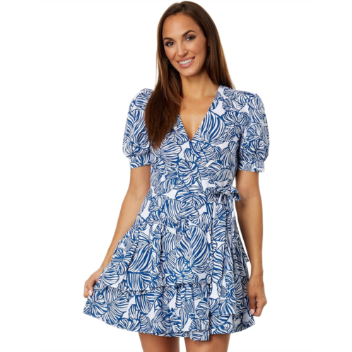 Let your personality shine in a new color by wearing Lilly Pulitzer Alexandria Elbow Sleeve C dress. The flare wrap skirt makes this dress unique. It is designed with a surplice neckline, waist tie, and elbow-length sleeves with pleated details. A tiered ruffle at the skirt lets you move freely outdoors. It is printed stylistically with oversized leafy design.