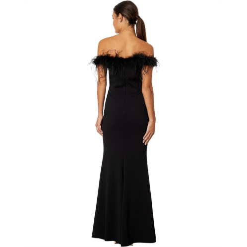 [US] XSCAPE Off-the-Shoulder Long Scuba Crepe Feathers