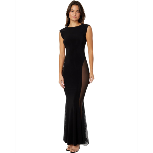 [US] Norma Kamali Sleeveless Crewneck Fishtail Gown w/Mesh Sides