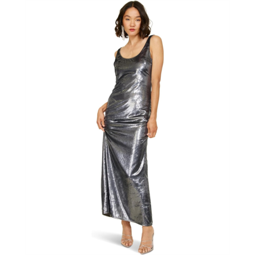 Radiate the shimmery glow as you step out for the party wearing Line And Dot Beaming Maxi Dress. It features a scoop neckline with medium shoulder straps and an A-line silhouette.