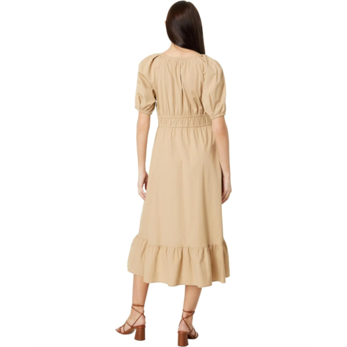 Keep your uber-chic style on point wearing Vineyard Vines Poplin V-Neck Midi Dress that features a midi-length and an A-line silhouette. The dress features a lightweight poplin fabrication, V-neckline, elbow-length puff sleeves with elastic cuff, elasticated detailing on the waist, and a tiered skirt.