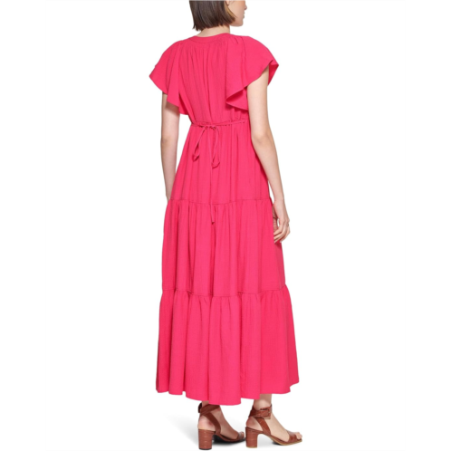 Calvin Klein Flutter Sleeve Gauze Midi Dress
