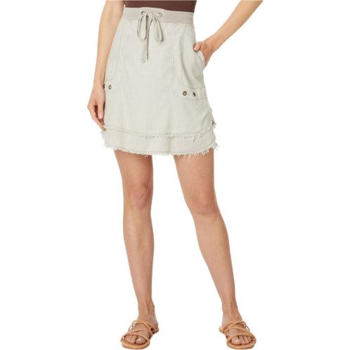 Curved seams and a tiered hem have the XCVI Hargen Tiered Skirt ahead of the pack. Paired with a drawstring waist, two front pockets, and brass grommet details, this mini skirt will give MAXI results. The mid-rise silhouette and frayed hem add to its style. Super comfortable and stylish, make your style statement wearing this mid-rise skirt.