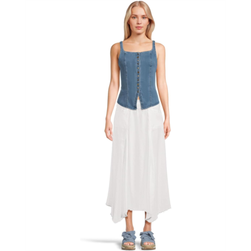 Voluminous double box pleats and a raw-edge sharkbite hem add movement and shape to this breezy XCVI Triste Skirt. A gentle jersey high waist in addition to front and back pockets finish off this beachy, bohemian look.