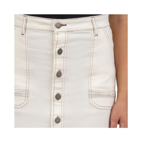The KUT from the Kloth Isla - Pencil Skirt With Contrast Stitching is designed in a high-rise waist with a slit at the front and back for a better range of movement. The buttoned front closure ensures easy wear. Made from a cotton blend fabric, this pencil skirt is finished with belt loops.