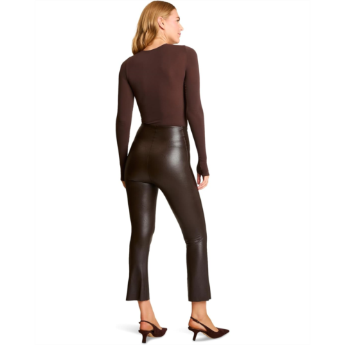 Elevate your fashion game by wearing Commando Faux Leather Cropped Flare leggings. These stylish leggings have four-way stretch and recovery. The pair has a raw-cut hem, high resistance to pilling, and firming fabric with light compression. The regular fit yet snug silhouette will take the shape of your legs in the first wear. With the flared look, this pull-on style cropped leggings have a signature smooth internal waistband that does not sag. Show off today!
