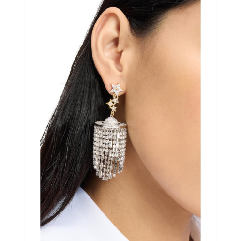 Showcase contemporary flair wearing the Kate Spade New York Space Cadet Fringe Earrings. The pair features dangling rhinestones and Signature Spade ear clutch closure.