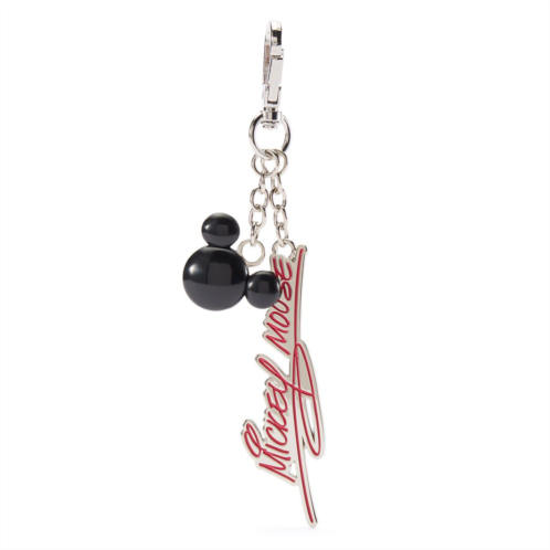 Add a little of Mickey's signature style to a bag with this keychain. Mickey's autograph has been die-cut in metal and dangles from a link chain along with a dimensional Mickey icon. Both charms hang from a lobster claw clasp so you can attach it to a favorite bag or key ring.