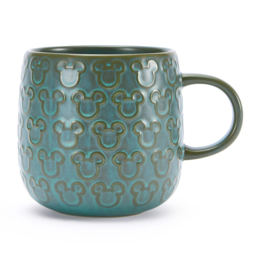 Slip out of suspended animation each morning with a sip and a smile from this handsome rustic green coffee mug. An allover bas relief pattern of Mickey Mouse icons gives it an elegant texture while the semi-gloss glaze over the weathered patina look adds shine.