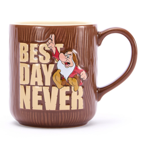 Wake up on the wrong side of the bed? Before you're off to the mines, it's time for a morning attitude adjustment along with Grumpy and his sculpted hot beverage mug with faux-wood texture, character art and ''Best Day Never'' caption.