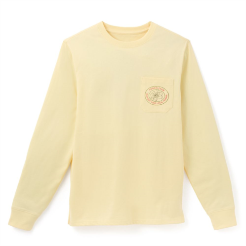 Pooh and Piglet urge you to ''support you local farmer''! This heavyweight long sleeve pocket tee is devoted to ''Hundred Acre Quality'' at ''Pooh's Farm'' ''Honey Division''. Fresh pots of golden ''hunny'' are yours that is if Pooh doesn't eat-up the profits first. The baggy oversize fit and enzyme wash make it even sweeter.