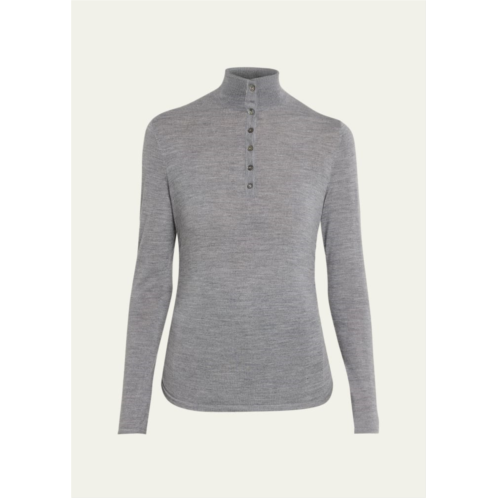 [US] Shirred Long-Sleeve Henley Shirt