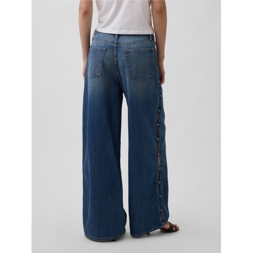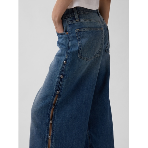 - Details: Zip fly, five-pocket styling, & studs at side seams.