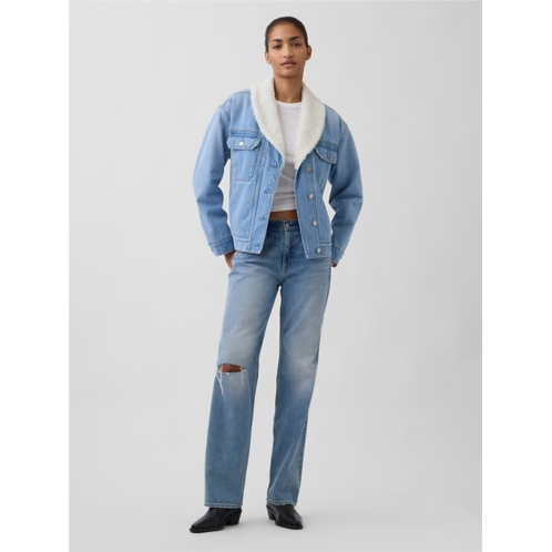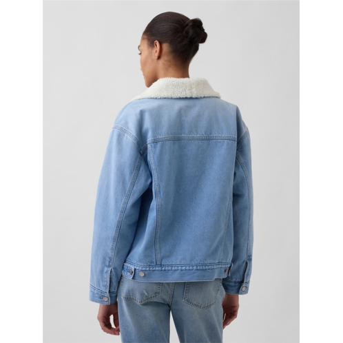 - Authentic non-stretch denim jacket with a cozy sherpa collar and body lining. In an oversized fit