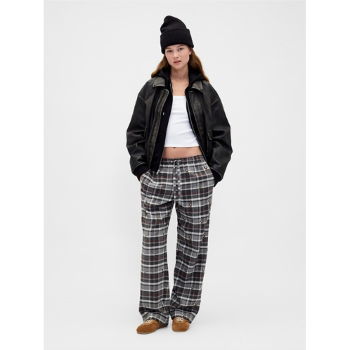 - Elasticized waist. Certain styles have drawcords or foldover band with Gap logo at front.