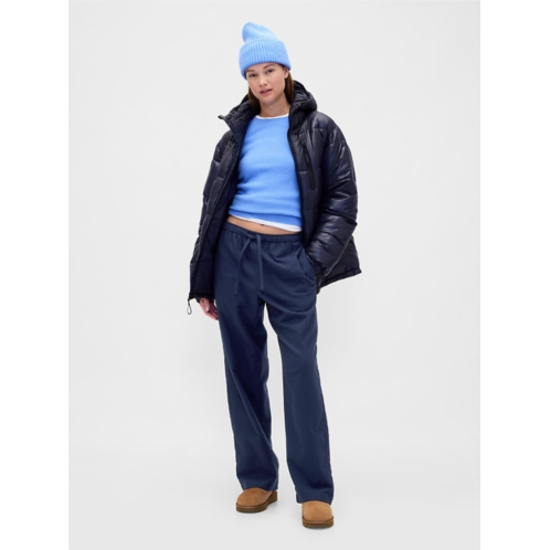 - Elasticized waist. Certain styles have drawcords or foldover band with Gap logo at front.